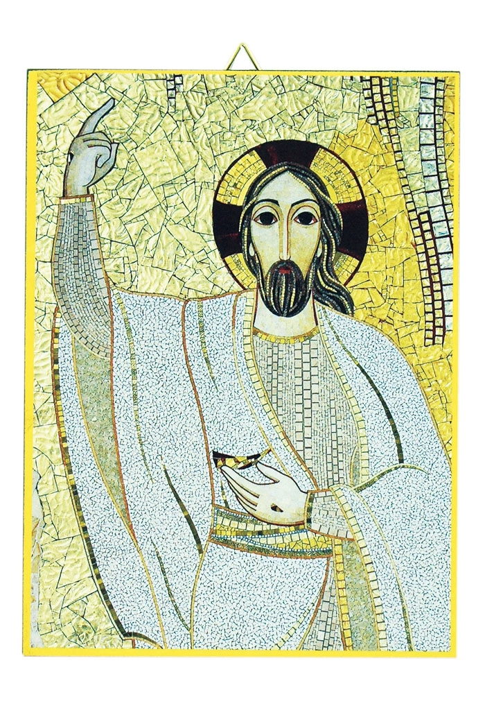 L'icona in legno "Cristo" di Rupnik rappresenta il volto di Gesù in modo che trasmetta una profonda spiritualità e una connessione con il divino. Questa icona è caratterizzata da un uso intenso del colore e da una particolare attenzione ai dettagli, creando un senso di movimento e vita. Padre Marko Rupnik è particolarmente riconosciuto per il suo approccio innovativo all'arte sacra, combinando tecniche tradizionali con una visione contemporanea.