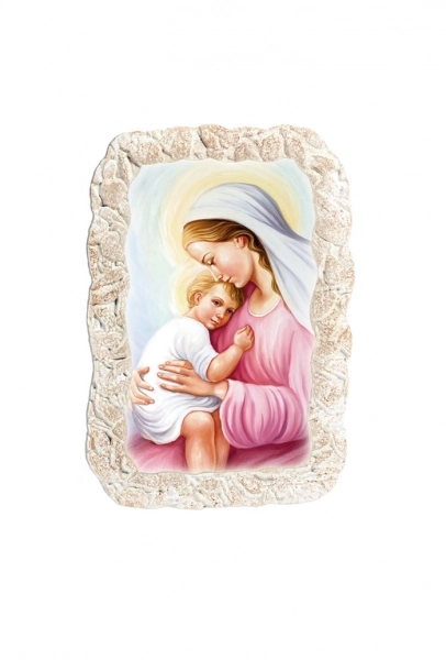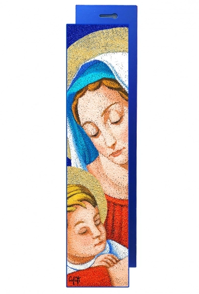 Icona della "Presentazione al Tempio" in legno, realizzata da Marko Rupnik, opera che riflette la profonda spiritualità e la tradizione iconografica cristiana. Marko Rupnik è un noto artista e sacerdote sloveno, famoso per le sue icone e mosaici che combinano elementi tradizionali con una visione contemporanea.