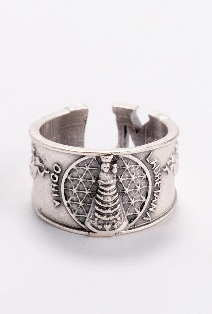 Anello unisex realizzato in zama con la raffigurazione centrale della Madonna di Loreto. Sul retro l'anello è aperto per facilitarne l'indossabilità. Comodo da indossare quotidianamente, fornito con la sua scatolina diventa un bellissimo regalo anche da uomo.