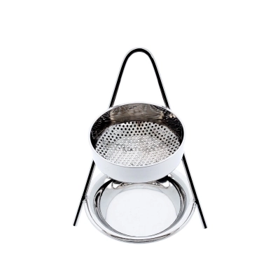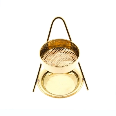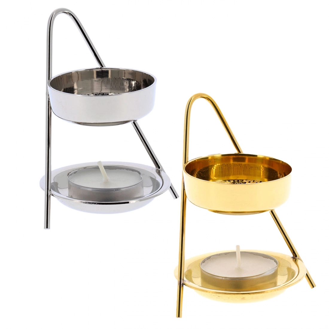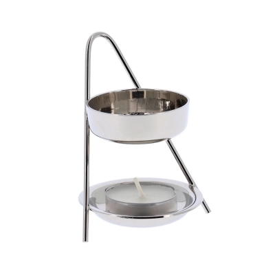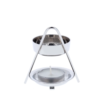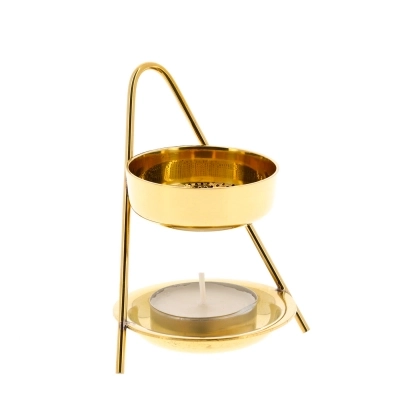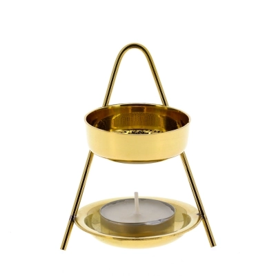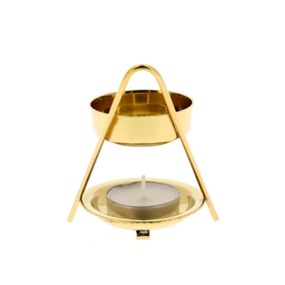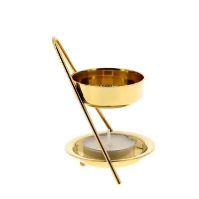 Brucia incenso dell'altezza di 10 cm e larghezza 6 cm, disponibile nella variante dorata o argentata. E' costituito da un supporto superiore in cui viene posizionato l'incenso e da uno inferiore dove invece viene introdotto un lumino da accendere in modo che il calore possa far bruciare l'incenso lentamente.