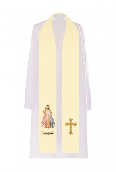 - Ha una croce dorata ricamata sulla parte alta della stola