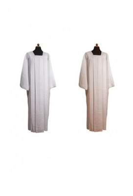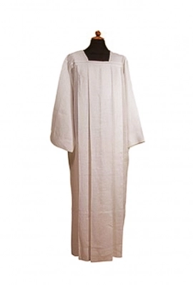 Elegante camice sacerdotale per amitto, con quattro piegoni e collo quadro. Tessuto misto cotone (65%) e poliestere (35%). Disponibile in bianco e avorio. Facile da indossare grazie alla zip posta sul petto. Prodotto interamente realizzato in Italia da una ditta artigiana specializzata nella realizzazione di paramenti sacri.