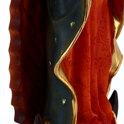 Graziosa e dettagliata statua che raffigura la Madonna di Guadalupe. La statua, dai colori brillanti, è adatta da esporre sia in qualsiasi ambiente domestico. La ricorrenza di questa festività avviene il 12 dicembre. Le apparizioni della Vergine di Guadalupe avvennero nel 1531 a nord di Città del Messico. Il nome Guadalupe venne dettato da Maria stessa a Juan Bernardino, lo zio di Juan Diego, essendogli apparsa per guarirlo da una grave malattia.