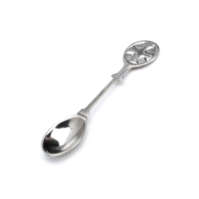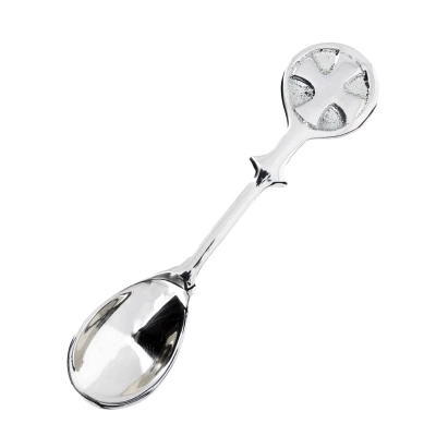 Cucchiaino in ottone per incenso, della lunghezza di 10 cm, utilizzato per prelevare e distribuire l'incenso durante i rituali religiosi o cerimonie. Realizzato in ottone, un metallo resistente e duraturo, il cucchiaino è progettato per essere utilizzato con facilità e precisione. Disponibile nella variante argentata o dorata, è di forma piatta, con una piccola cavità nella parte superiore per contenere l'incenso e croce nella parte finale del manico. Questo permette di prelevare una piccola quantità di incenso e distribuirlo in modo controllato.