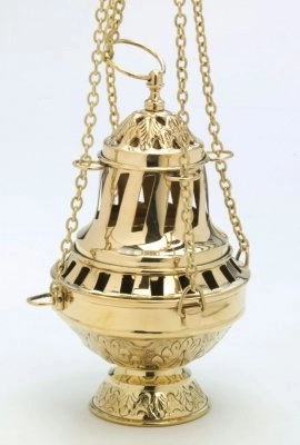 Turibolo in ottone con ciotolina interna. Dimensioni 24x16 cm