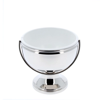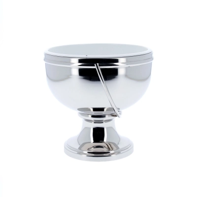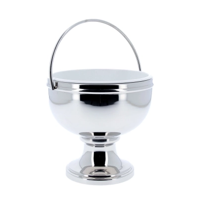 Secchiello per Benedizone realizzato in ottone lucido, disponibile nella variante argentata e dorata. La parte interna di questo secchiello è estraibile e laccata bianca. E' facilmente trasportabile grazie ad un pratico manico. Diametro interno 18 cm, diametro base 12,5 cm, capacità 0,5 litri.