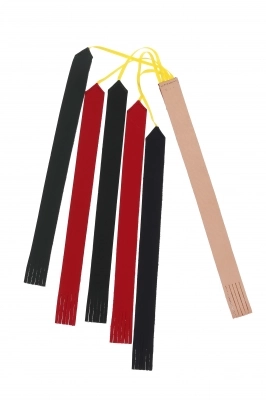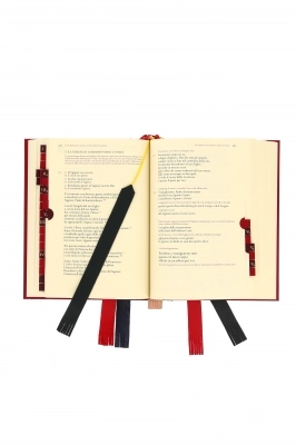 Segnalibro ideato per il Messale Romano e per il Lezionario, ma facilmente adattabile anche ad altri volumi. Il segnalibro presenta una nistola in cuoio rigido (della lunghezza di 30 cm e della larghezza di 2,5 cm), che si inserisce nel dorso del libro, quindi tra il libro stesso e la copertina. A questa, tramite dei nastrini di raso, sono legate cinque nistole in vera pelle della stessa lunghezza e di colore diverso tra loro che fungono da vero e proprio segnalibro e che consentono di tenere segnate più pagine contemporaneamente. Il prodotto è resistente, perché è ribattuto e cucito; è realizzato artigianalmente in Italia.