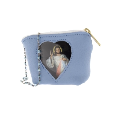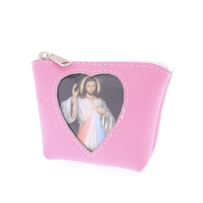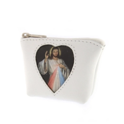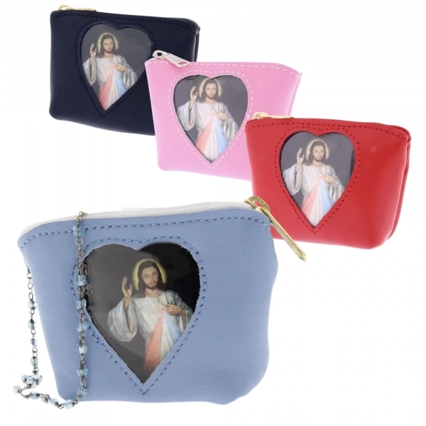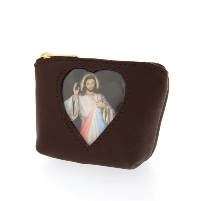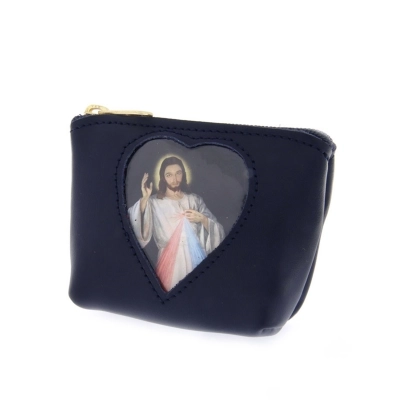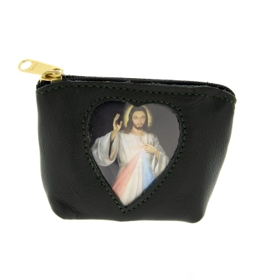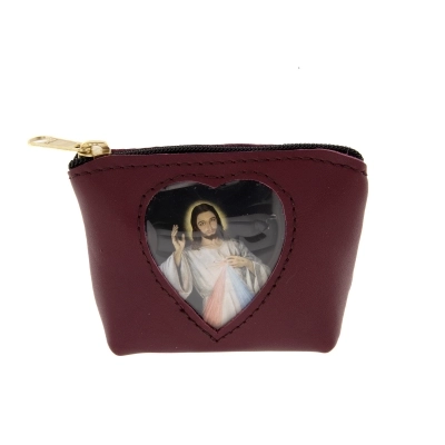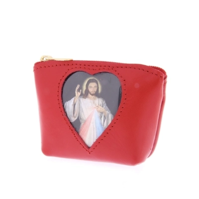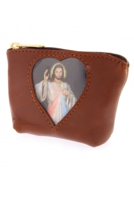 Carinissimo porta corona in pelle con finestrella a forma di cuore, al cui interno è inserita un'immagine di Gesù Misericordioso, che può comunque essere sostituita. Può essere utile utilizzarlo anche come porta spicci o porta banconote. Di piccole dimensioni e leggerissimo, può essere portato sempre in tasca senza sentirne il peso. Disponibile in più colorazioni per soddisfare i gusti di tutti. Realizzata in Italia da un'azienda artigianale che opera da anni nel settore della pelletteria.