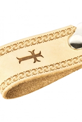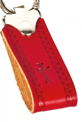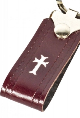 Portachiavi in vero cuoio, realizzato artigianalmente in Italia, con bordi e croce centrale in rilievo e chiusura ad anello. Disponibile in diverse colorazioni. Realizzata in Italia da un'azienda artigianale che opera da anni nel settore della pelletteria.