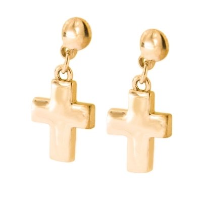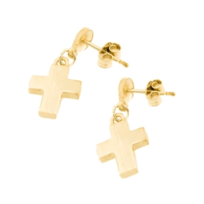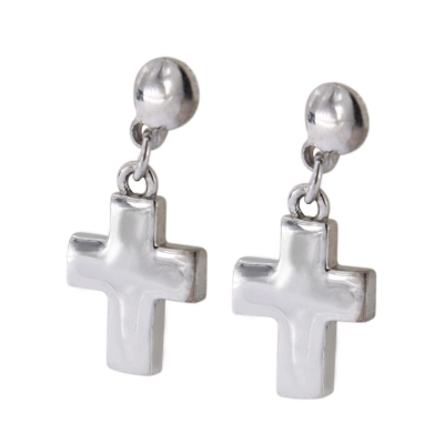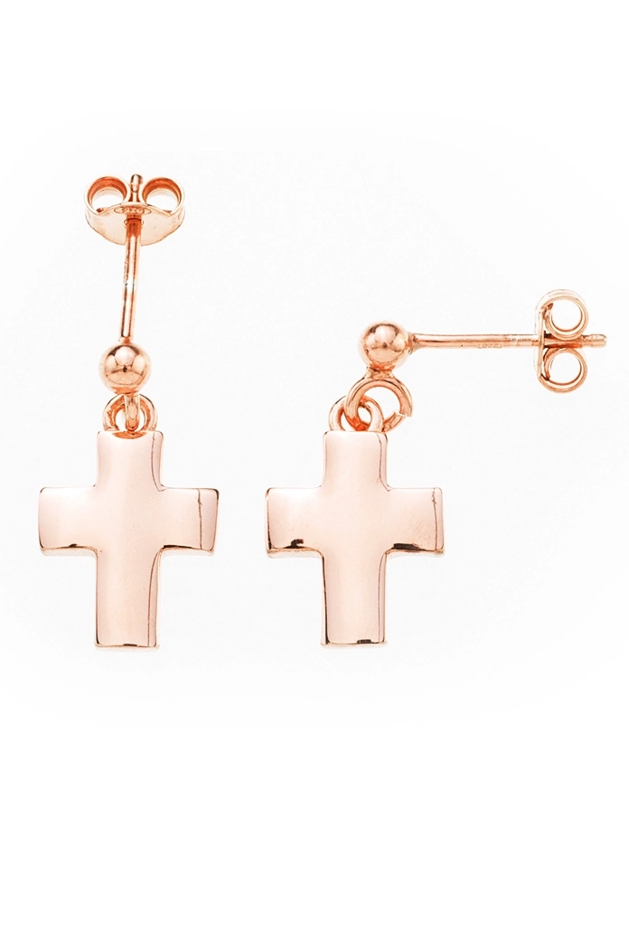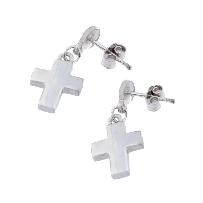 Coppia di orecchini pendenti con Croce delle dimensioni di 1x1,5 cm, in argento 925 rodiato. Eleganti e semplici si prestano ad essere indossati in qualsiasi occasione. Disponibili nelle varianti argento, argento dorato e rosè. Prodotto realizzato in Italia da azienda di artigiani specializzati nella lavorazione dell'argento.