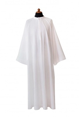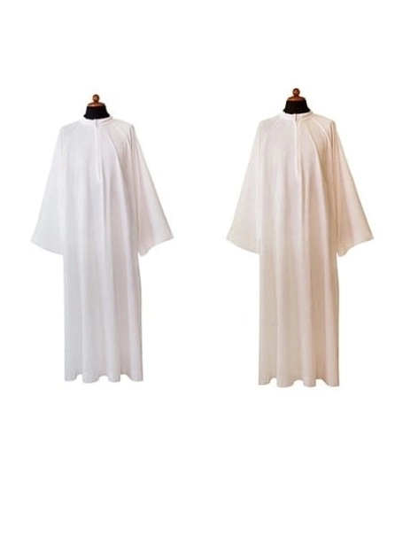 Camice sacerdotale in tessuto misto cotone (65%) e poliestere (35%), caratterizzato da una linea molto semplice e priva di ricami. Svasato con manica raglan e con comoda chiusura sul davanti per una facile vestibilità. Disponibile nei colori bianco e avorio. Facile da indossare grazie alla zip posta sul petto. Prodotto interamente realizzato in Italia da una ditta artigiana specializzata nella realizzazione di paramenti sacri.