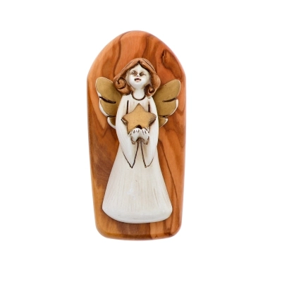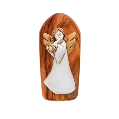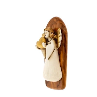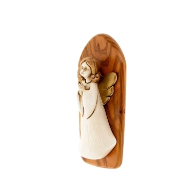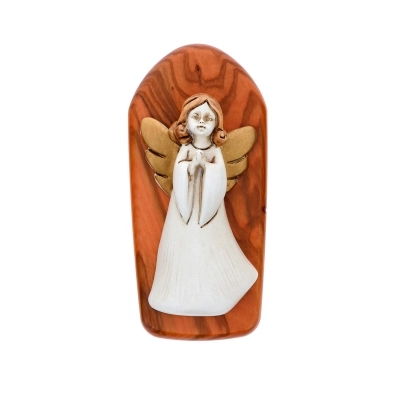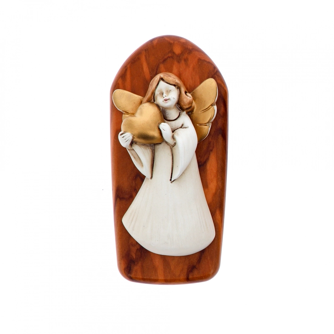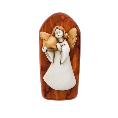 Carinissimi angioletti in resina con dettagli dorati. L'angioletto è attaccato ad un pannello in legno d'ulivo nazionale, con foro per essere appeso. Il risultato è un delizioso quadretto tridimensionale da tenere in casa, come protezione.