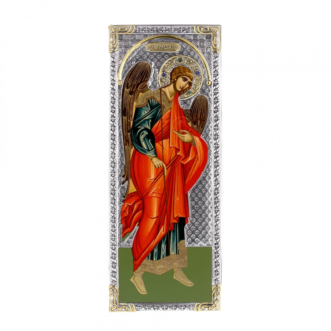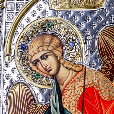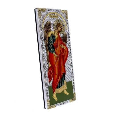 Icona bizantina, in legno, raffigurante San Michele Arcangelo, realizzata in argento 925 e doratura 22K. Si adatta per essere collocata in qualsiasi ambiente domestico e con qualsiasi stile di arredamento. Ideate e prodotte esclusivamente in Grecia, da un'importantissima azienda che da anni opera nel settore delle icone sacre e che lavora con prodotti di alta qualità.