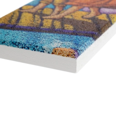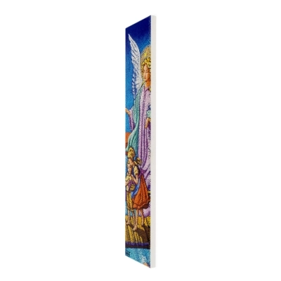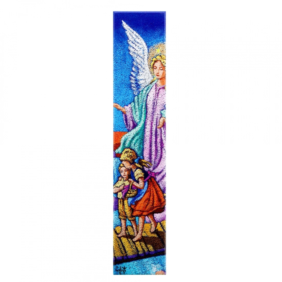 Bel quadretto in legno con forellino per essere appeso, delle dimensioni 10x15 cm. Viene raffigurata l'Angelo Custode che veglia su due bambini. L'illustrazione è ad opera del pittore maceratese Stefano Calisti, conosciuto come il "prestigiatore dei colori". La sua pittura, è infatti caratterizzata da una cromia straordinariamente vivace e ha subito goduto di notevoli consensi di pubblico e di critica. Tra i soggetti preferiti, il paesaggio, e di esso la suggestione evocatrice del colore, della materia e di una luce che si fa accezione e poesia. Bella idea regalo, per abbellire la cameretta di un bambino.