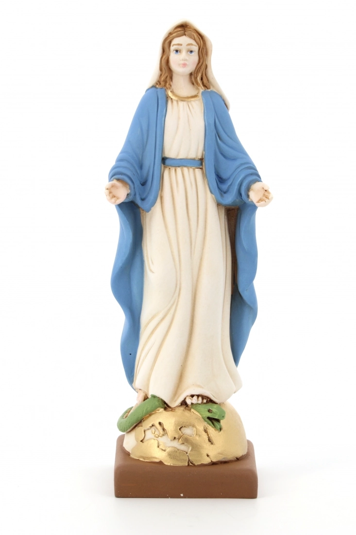 Graziosa e dettagliata statua che raffigura la Madonna Immacolata. La statua, dai colori brillanti, è adatta da esporre in qualsiasi ambiente domestico.