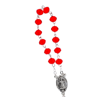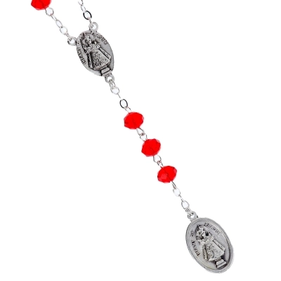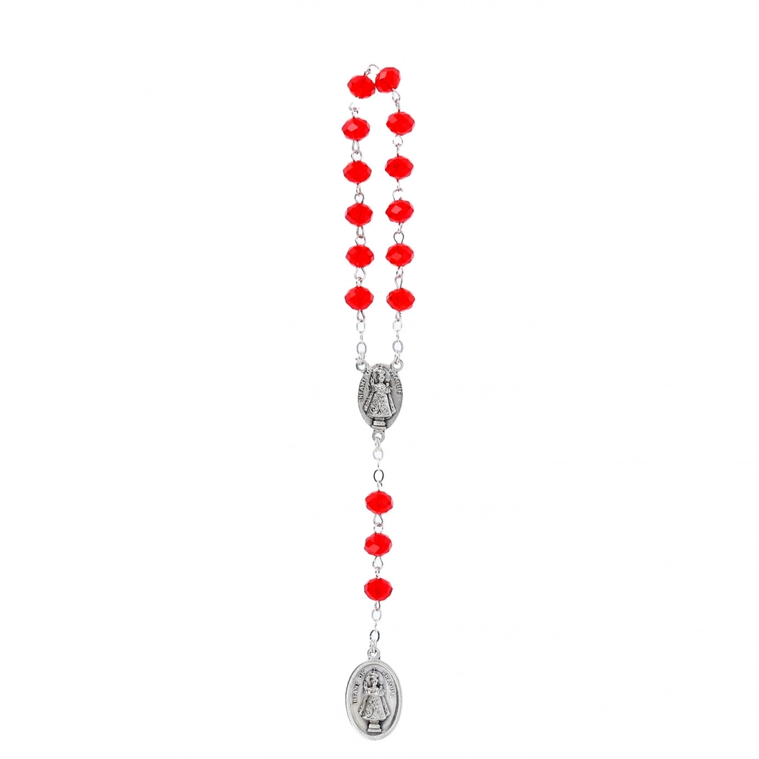 La corona è composta da 12 grani, di diametro 8 mm, in cristallo rosso. La crociera e la medaglia finale raffigura Gesù Bambino di Praga. Segui Gesù Bambino nel suo grande viaggio per il mondo! Scoprirai in lui un amico impaziente di aiutarti, se solo glielo chiederai, e diventerà per te un compagno di viaggio che riempirà di luce il tuo cammino.