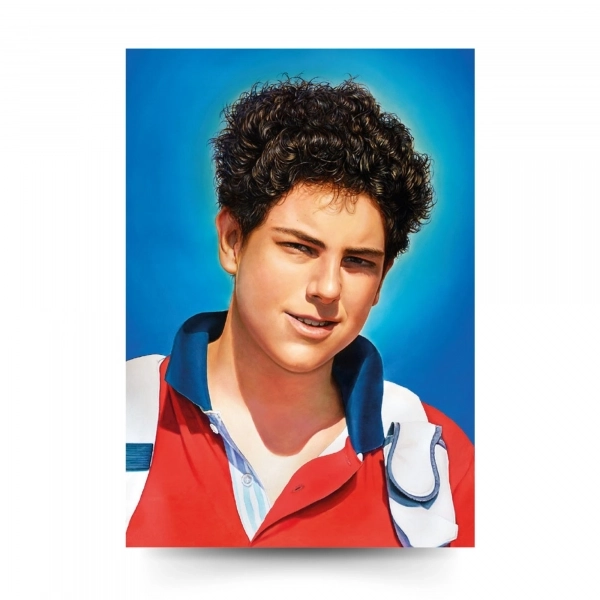 La foto di dimensioni 48x68 cm raffigura una delle immagini più diffuse di Carlo. Si tratta di un quadro con il ritratto del giovane, ad opera del pittore di origine polacca Dawid Kownack, usato durante la beatificazione. È stampata su carta patinata lucida da 300 g. con plastificazione sia sul fronte che sul retro.