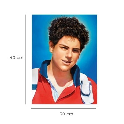 La foto di dimensioni 30x40 cm raffigura una delle immagini più diffuse di Carlo. Si tratta di un quadro con il ritratto del giovane, ad opera del pittore di origine polacca Dawid Kownack, usato durante la beatificazione. È stampata su carta patinata lucida da 300 g. con plastificazione sia sul fronte che sul retro.