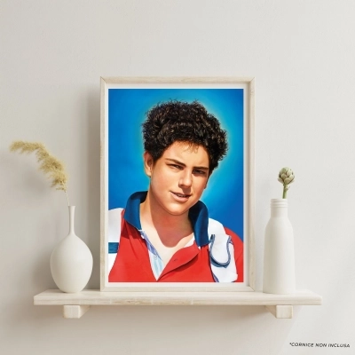 La foto di dimensioni 15x21 cm raffigura una delle immagini più diffuse di Carlo. Si tratta di un quadro con il ritratto del giovane, ad opera del pittore di origine polacca Dawid Kownack, usato durante la beatificazione. È stampata su carta patinata lucida da 300 g. con plastificazione sia sul fronte che sul retro.