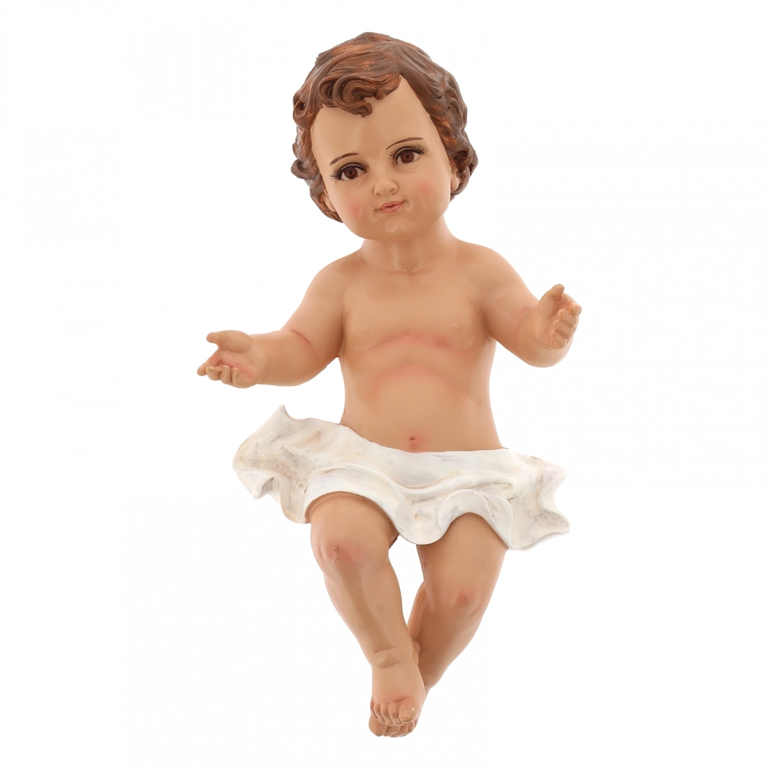 Statua Gesù Bambino in resina raffigurato con le braccia aperte e lenzuolino bianco, impreziosito dagli occhi in vetro che rendono il viso molto realistico ed espressivo. Ricca di dettagli ben rifiniti e curata nei particolari, la statua è adatta per essere esposta in qualsiasi ambiente domestico, ma anche in luoghi di culto. Adatta come idea regalo da donare in qualsiasi momento e per qualsiasi occasione, ma si arricchisce di valore spirituale soprattutto se regalata nel periodo natalizio.
