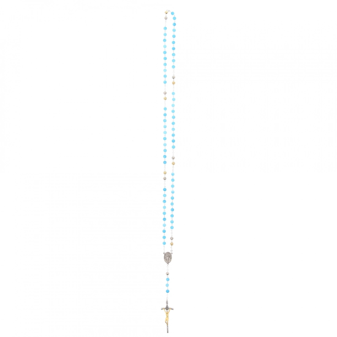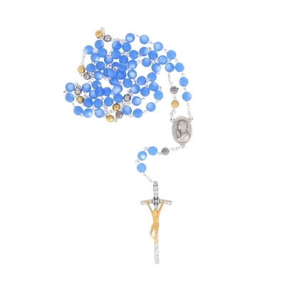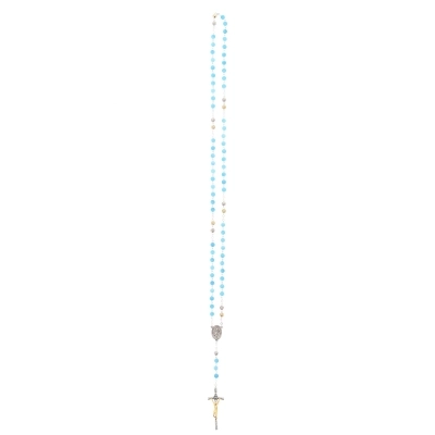 La corona è composta da 6 poste di 10 grani, di diametro 6 mm, in madreperla celesti, intervallati da grani in metallo a forma di rosellina. La crociera raffigura santa Brigida sul fronte e maria in preghiera sul retro e la croce finale è la classica croce pastorale. La corona è facilmente indossabile al collo. Questo Rosario si prega in onore della santissima Vergine e in memoria dei 63 anni che Maria, secondo la credenza popolare, visse sulla Terra.