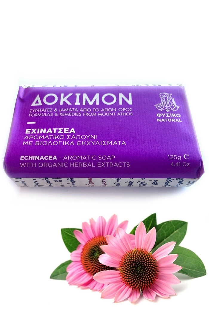 Sapone all' Echinacea, prodotto dai monaci del monastero posto sul Monte Athos. Realizzato con erbe aromatiche raccolte direttamente nelle vicinanze del monastero, è un trattamento naturale per la cura della pelle, deterge e dona freschezza. Formule e rimedi dal Monte Athos.