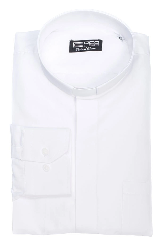 Camicia bianca, manica lunga, misto cotone, collo clergy