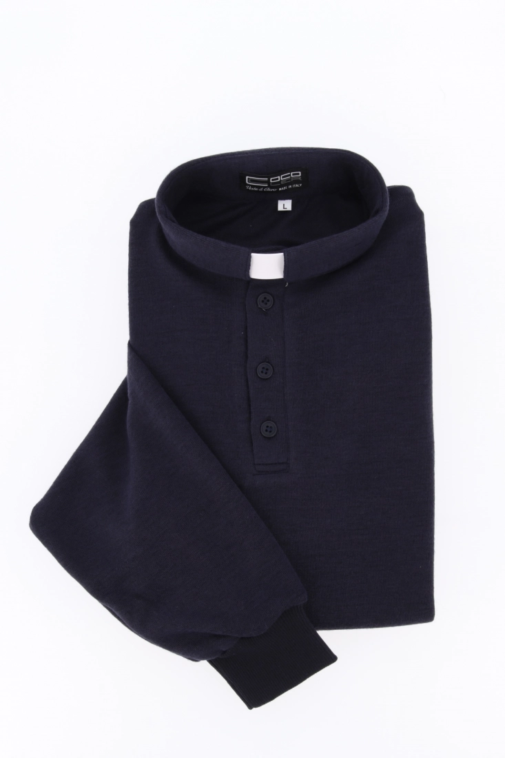 Maglia polo invernale con collo clergy, realizzata in misto poliestere e lana, che garantisce estrema durabilità nel tempo, ma allo stesso tempo rende il capo caldo per l'inverno. Ha un'ottima vestibilità ed è curata nei dettagli, questo lo si nota dai bottoni dello stesso colore del tessuto e a vista. Realizzata interamente in Italia con materiali di primissima qualità e provenienti dall'Italia o paesi dell'Unione Europea, da un'azienda che cura ogni minimo dettaglio con passione e attenzione.