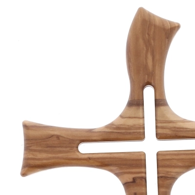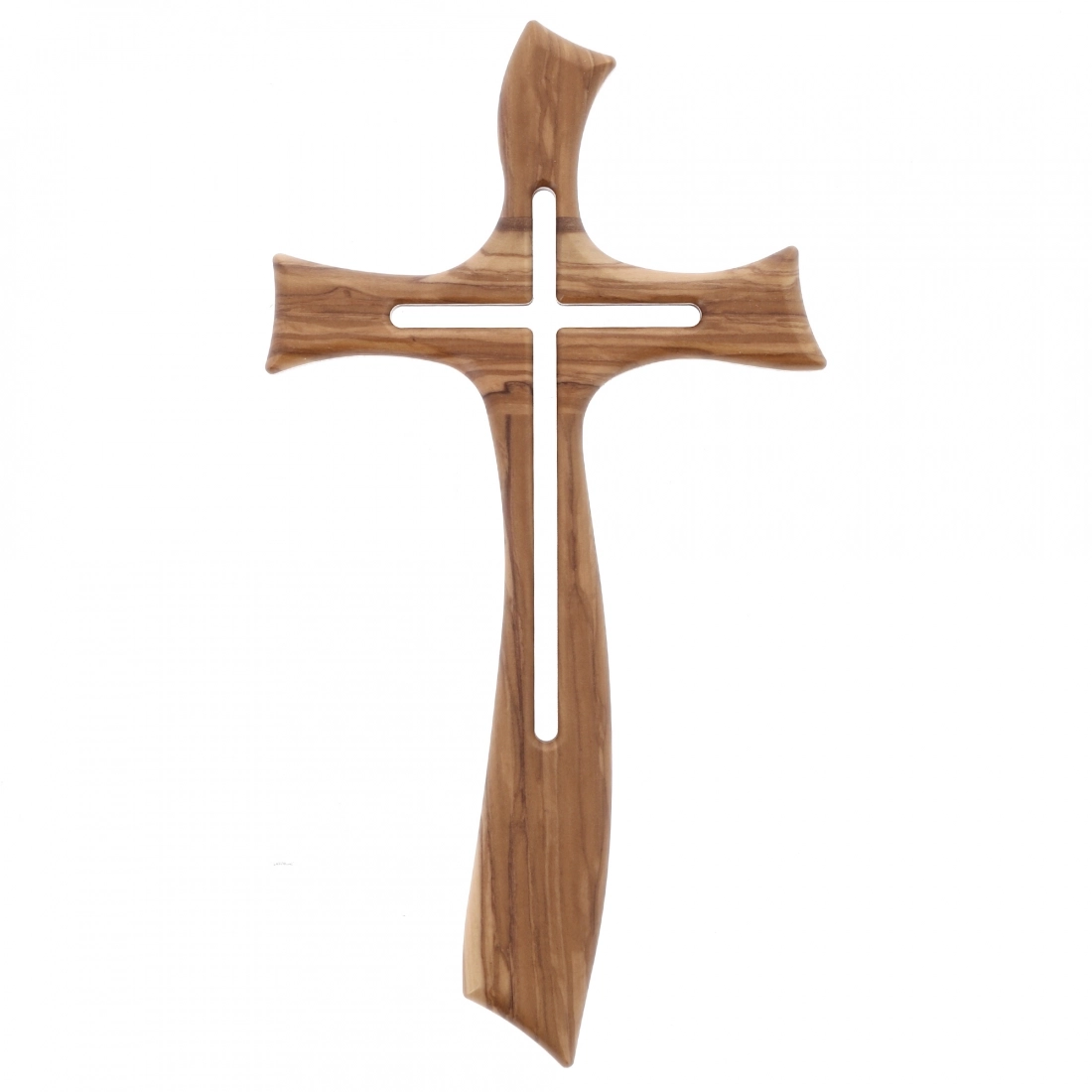 Bellissima croce stilizzata e traforata, realizzata in legno d'olivo di alta qualità. Dalle linee moderne, questo crocifisso unisce il design e il valore spirituale e simbolico che da sempre viene attribuito al crocifisso. Adatto a qualsiasi stile di arredamento. Ideato per chi vuole arredare la propria casa con gusto e originalità. Realizzato in Italia, da un'azienda artigianale esperta nella lavorazione del legno, soprattutto quello di olivo, che viene lasciato riposare diversi anni prima della lavorazione, questo per garantire maggiore durata del prodotto finito.