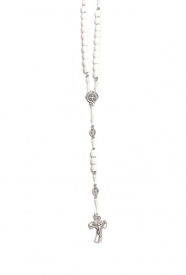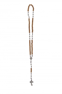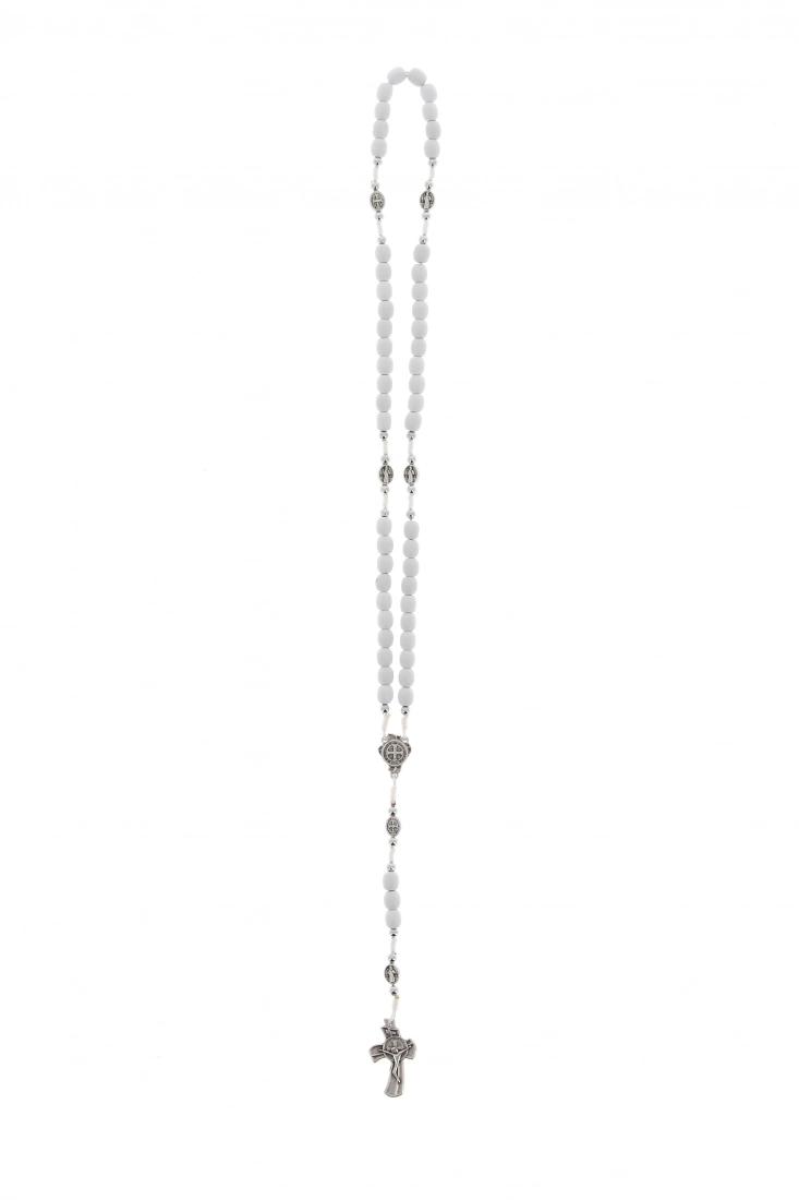 Bellissima corona del Rosario in corda con grani ovali in legno da 11 mm. I grani in cui si recita il "Padre Nostro", la crociera e la croce finale sono in metallo. Questa corona si definisce di san Benedetto in quanto presenta sia croce che crociera con la medaglia di san Benedetto. Anche se non è dotata di apertura, è possibile indossarla comodamente. Ideale come regalo, in quanto fornita in una bustina trasparente completa di biglietto in cui viene spiegata la devozione alla medaglia di San Benedetto.
