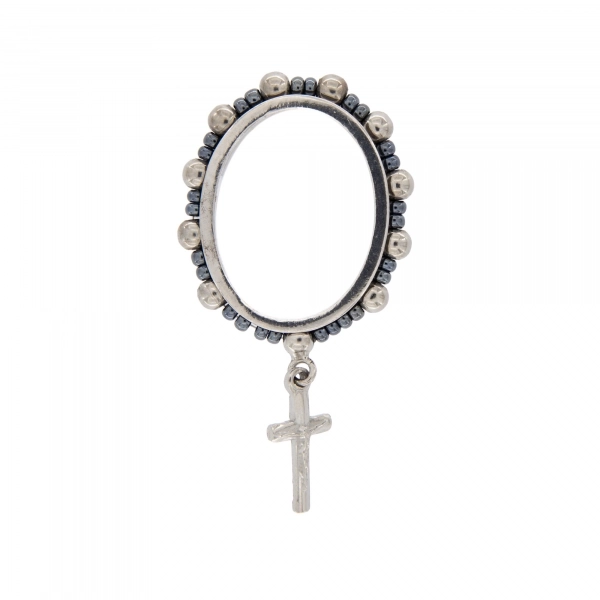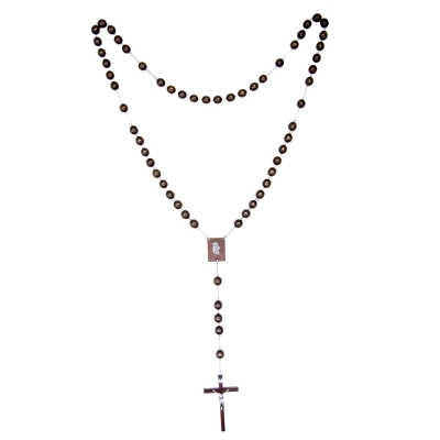 Il rosario è realizzato in legno scuro, montato su catena in metallo. Nella crociera, di dimensioni 4,5x6 cm, vi è un inserto in metallo rappresentante la Madonna con il Bambino. Anche il crocifisso è in legno con il corpo in metallo. I grani ovali di questo rosario hanno altezza di 24 mm. Articolo realizzato in Italia con legno di ottima qualità. Articolo realizzato in Italia con legno di ottima qualità.