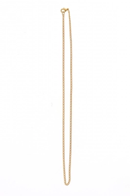 Catenina in metallo dorato e chiusura con moschettone, maglia semplice. Ideale per l'inserimento di ciondoli, piccole croci o medaglie.