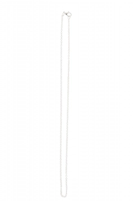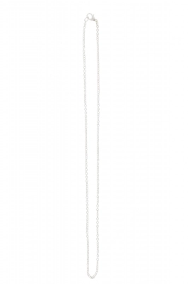 Catenina in metallo argentato e chiusura con moschettone, maglia semplice. Ideale per l'inserimento di ciondoli, piccole croci o medaglie.