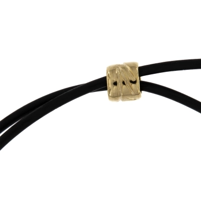 Catenina in caucciù con gancetto in metallo dorato che ne consente l'apertura. A rendere la catenina più particolare è la presenza di un anellino, in metallo dorato, utile per non far scorrere l'eventuale ciondolo che si vuole abbinare.