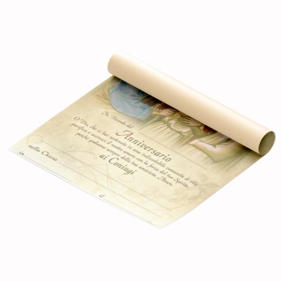 Questa pergamena è anche personalizzabile con il nome degli sposi, della Chiesa e la data della cerimonia.