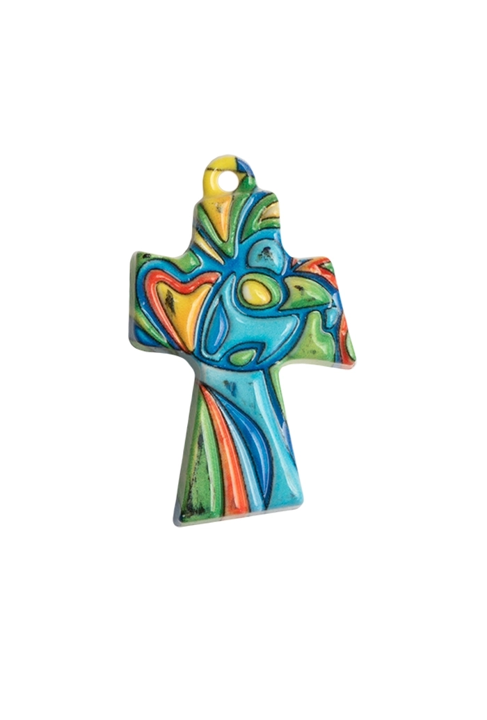 Carinissimo ciondolo crocetta in polimero, effetto ceramica, con raffigurazione stilizzata di Cristo che abbraccia il fedele, come segno di Perdono e Riconciliazione. Grazie ad un cordoncino lilla, dalla lunghezza di 35 cm, è possibile indossarla al collo. E' confezionata in una bustina con bigliettino come ricordo della Confessione con una piccola preghierina. Potrebbe essere una carinissima idea regalo per lasciare un ricordo di grande valore ai bambini che si apprestano a ricevere questo importantissimo Sacramento.