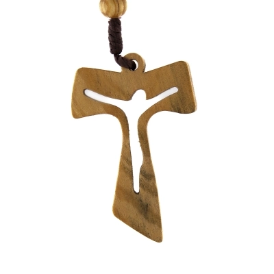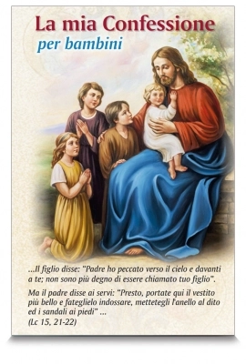 Ricordino da regalare ai bambini che si apprestano alla Prima Confessione, composto da una corona del Rosario in corda, con grani tondi in legno, la cui colorazione è molto simile a quella del legno di olivo. I grani sono del diametro di 6 mm. La croce finale ricorda un Tau ed è traforata con la sagoma del corpo di Gesù. Il tutto è confezionato in una bustina trasparente completa di biglietto della Prima Confessione con all'interno Preghiera per la Confessione, Come confessarsi, Esame di coscienza e Rito della Penitenza il tutto scritto appositamente per i bambini.