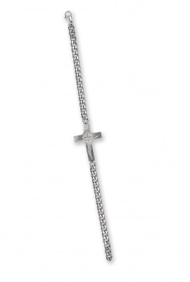 Bracciale in acciaio inossidabile lucido, a catena liscia e piata, con Croce di San Benedetto e chiusura a moschettone. La croce di San Benedetto è un simbolo cristiano che rappresenta la protezione e la benedizione. È spesso associata a San Benedetto da Norcia, il fondatore dell'Ordine Benedettino. Il simbolo è caratterizzato da una croce con una serie di lettere che formano un'abbrevazione di una preghiera di protezione. Le lettere "C S S M L" stanno per "Crux Sacra Sit Mihi Lux" (La Santa Croce sia la mia luce), mentre "N D S M D" significa "Non Draco Sit Mihi Dux" (Non sia il drago il mio guida). Questo simbolo è frequentemente utilizzato in contesti religiosi e viene spesso benedetto per scopi di protezione.