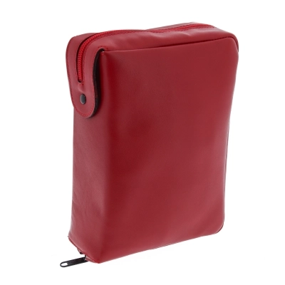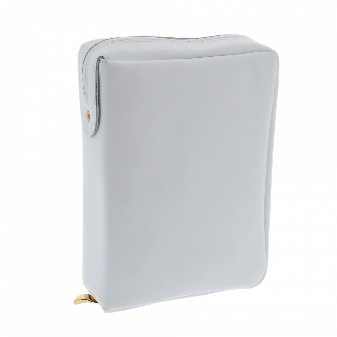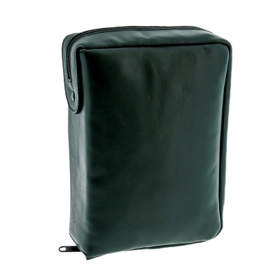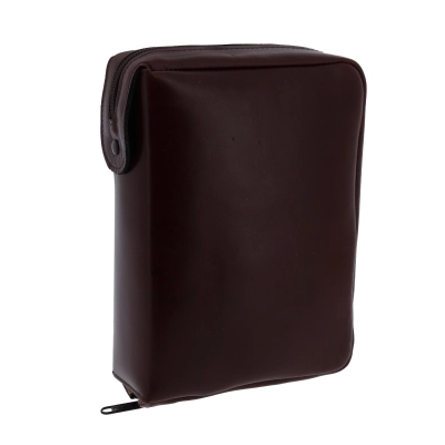 Custodia in pelle ideata e prodotta su misura per la Bibbia di Gerusalemme. La custodia, all'interno, è rivestita con un'elegantissima stoffa dall'effetto setato ed è completa di due fettucce in pelle in cui è possibile inserire la copertina del libro, per evitarne spostamenti e per rendere più pratica la lettura. E' dotata di zip esterna, molto resistente, che ne consente l'apertura e che dà una protezione totale al volume custodito all'interno. Disponibile in più colorazione per accontentare i gusti di tutti. Adatta ad accogliere libri con formato massimo 14x20x5.5 cm. Realizzata in Italia da un'azienda artigianale che opera da anni nel settore della pelletteria.