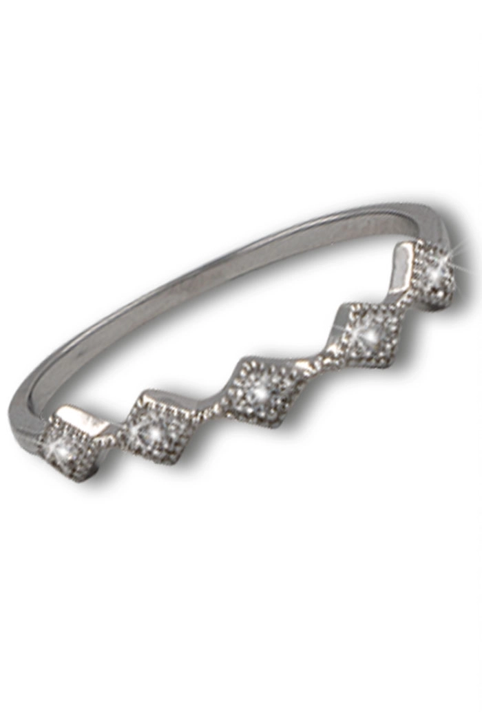 Raffinato anello in acciaio con cinque zirconi luminosi ad impreziosirlo. Disponibile nelle misure dalla 13 alla 26.
