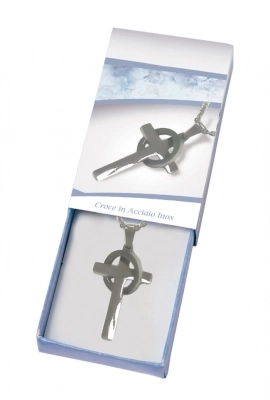 Catenina in acciaio inossidabile con ciondolo croce e cerchio e chiusura a moschettone. Molto bello e curato il packaging che si apre a cassetto e presenta un' illustrazione nella parte anteriore e la preghiera del Padre Nostro nella parte posteriore. La croce è un simbolo di fede, in particolare nel cristianesimo, dove rappresenta la crocifissione di Gesù Cristo e il suo sacrificio per l'umanità. Indossare un ciondolo a forma di croce simboleggia dunque la propria fede, la protezione divina o un legame spirituale. Prodotto molto carino da regalare.