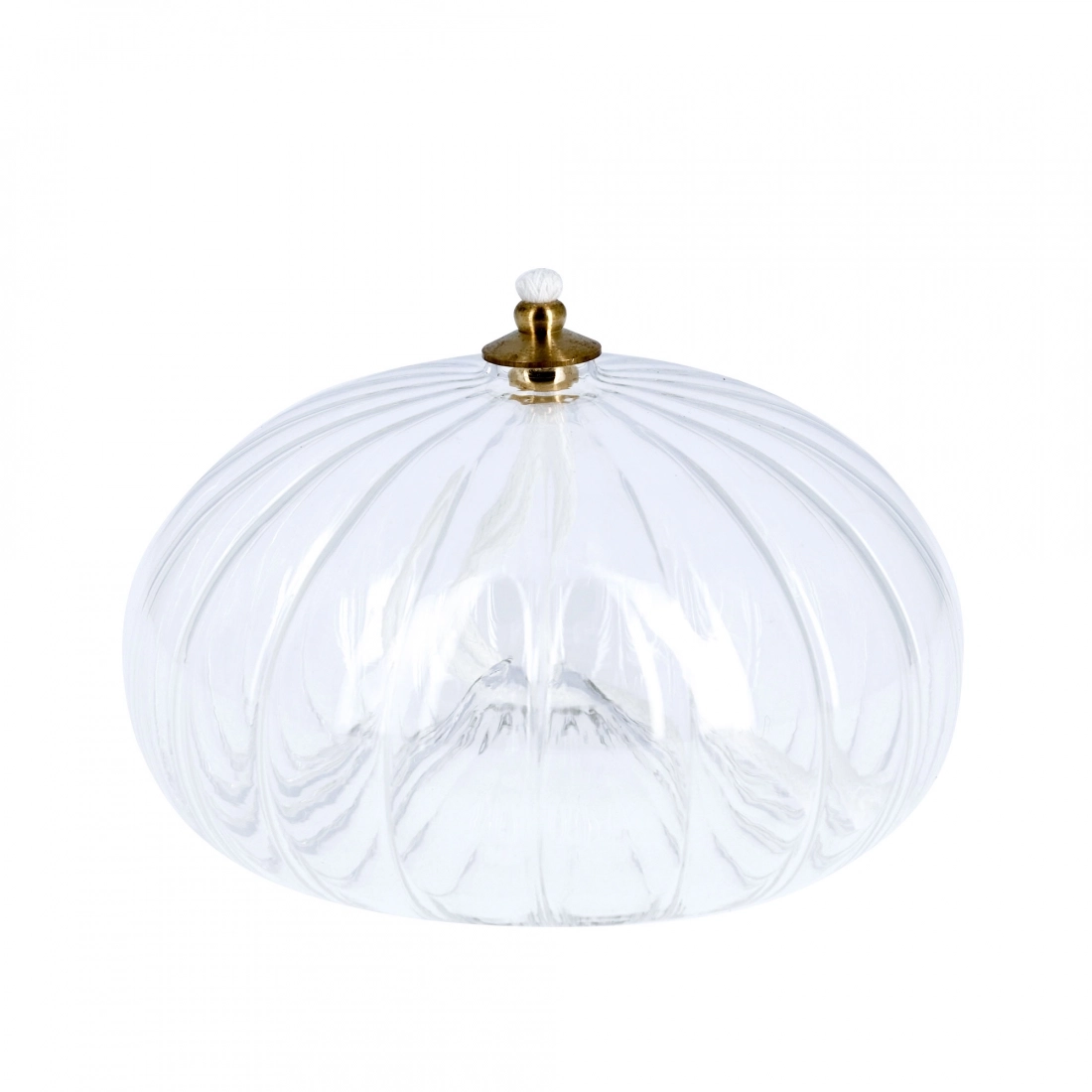 Lampada in vetro a cera liquida a forma di melograno del diametro 9,5 cm e altezza 7,5 cm. Da usare in Chiesa ma anche per uso domestico.