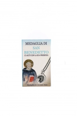 Catenina in acciaio inossidabile con ciondolo Medaglia di San Benedetto. Molto bello e curato il packaging che si apre a cassetto e presenta un' illustrazione nella parte anteriore e la spiegazione delle iniziali della Medaglia nella parte posteriore. La Medaglia di San Benedetto è un simbolo associato a San Benedetto di Norcia, il fondatore dell'Ordine Benedettino ed è un oggetto di devozione cristiana, particolarmente venerato nella tradizione cattolica. E' spesso utilizzata come simbolo di protezione contro il male e le influenze negative. La medaglia presenta, su un lato, l'immagine di San Benedetto con una croce e, sull'altro lato, un'iscrizione che include una preghiera o un'invocazione. Molti credenti la indossano come segno di fede e per invocare la protezione divina nella vita quotidiana. Prodotto molto carino da regalare.