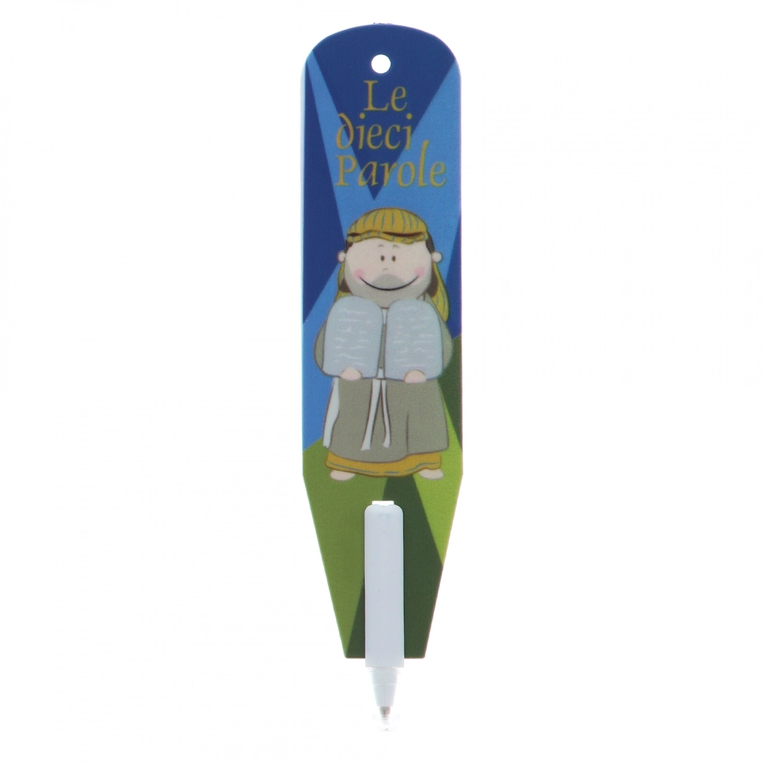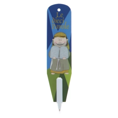 Carinissima penna piatta per bambini, che può fungere anche da simpatico segnalibro. Vengono raffigurati i 10 Comandamenti. Deliziosa ed economica idea regalo per i più piccoli. Dimensione 3x13 cm.