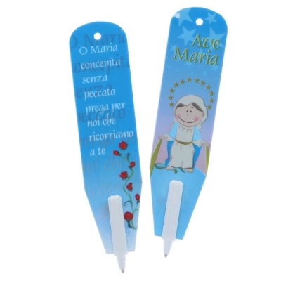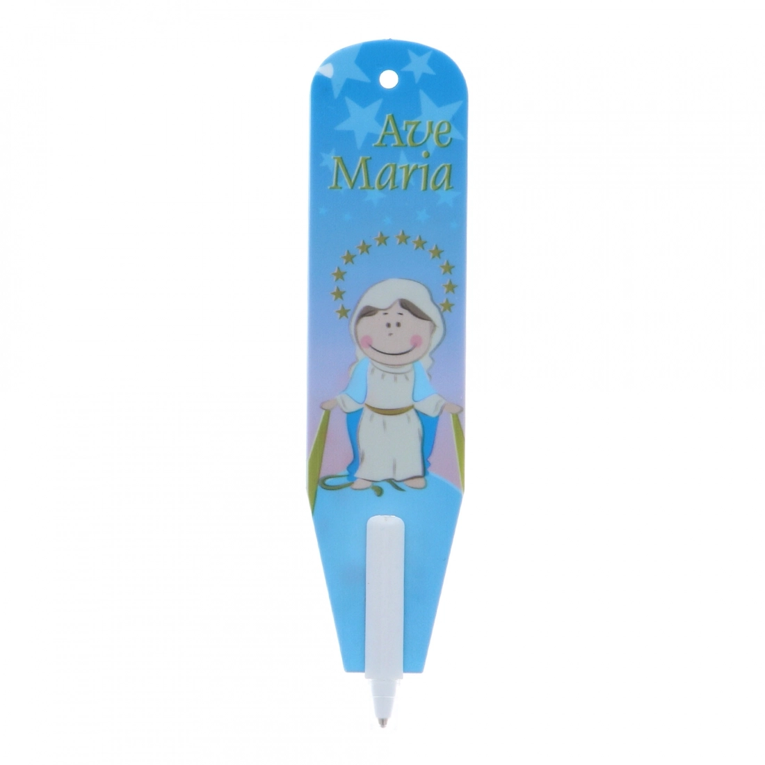 Carinissima penna piatta per bambini, che può fungere anche da simpatico segnalibro. VIene raffigurata una dolce Madonna Miracolosa. Deliziosa ed economica idea regalo per i più piccoli. Dimensione 3x13 cm.