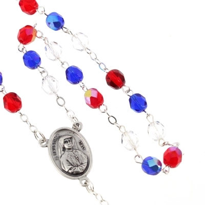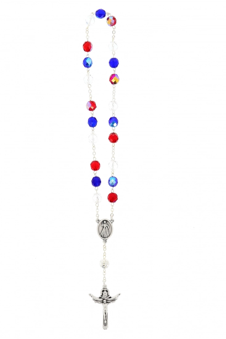 La corona è composta da composto da sette terzine di grani sfaccettati in cristallo rosso, blu e bianco. Sulla crociera da un lato l’immagine di Gesù Misericordioso e dall'altro Santa Faustina. La Coroncina dei sette Pater, Ave, Gloria, conosciuta dalla tradizione croata anche come “Coroncina della pace”, è una devozione riscoperta a Medjugorje da quando il piccolo paesino della Bosnia Erzegovina è diventato il protagonista di un fenomeno mariano diventato di portata mondiale.