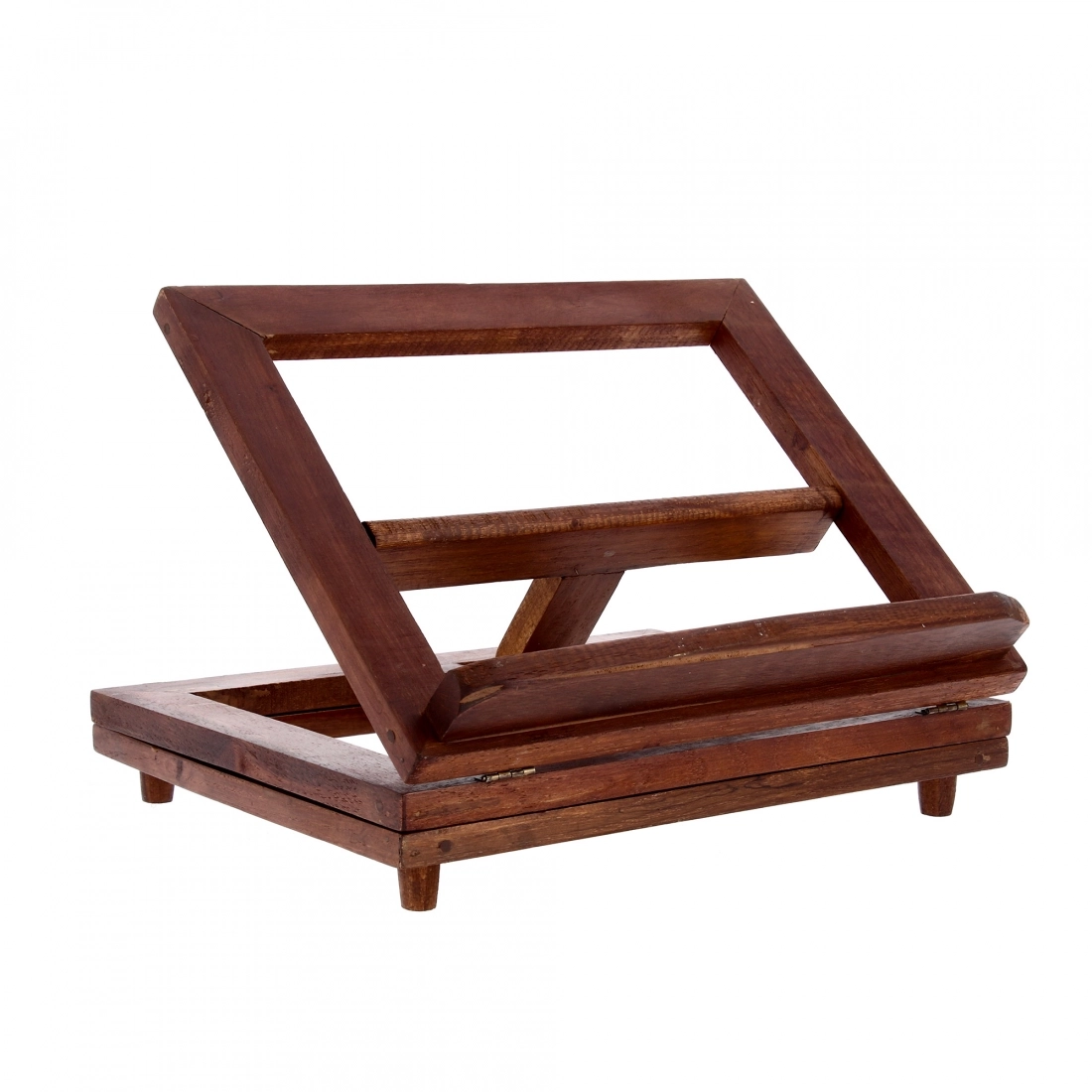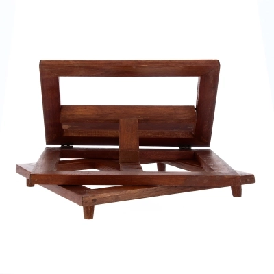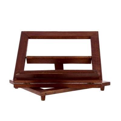 Leggio girevole in legno tinto noce robusto e dalle linee essenziali, adatto a tutti gli usi. Molto comode le 4 possibili inclinazioni, per un uso più personale, e la possibilità di ruotare il leggio.