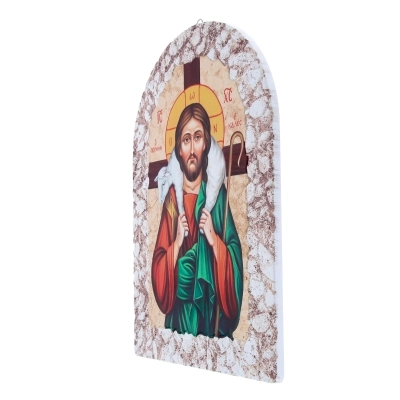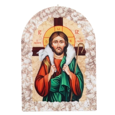 Quadro cupola effetto pietra “Icona Cristo Buon pastore” e cavalletto. Dimensioni 25x36 cm