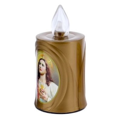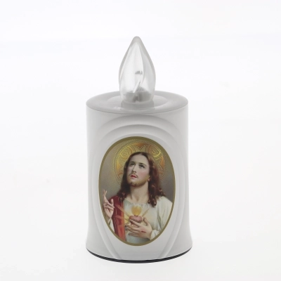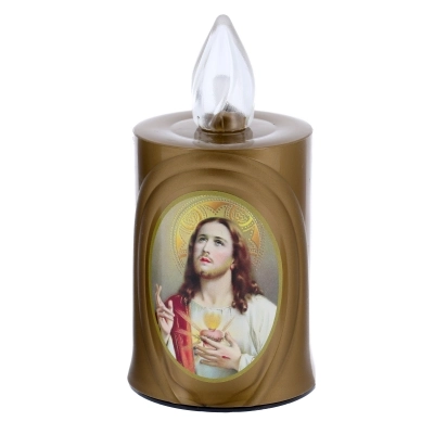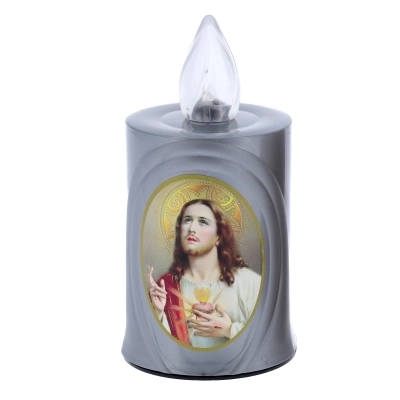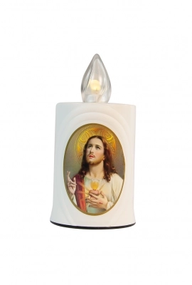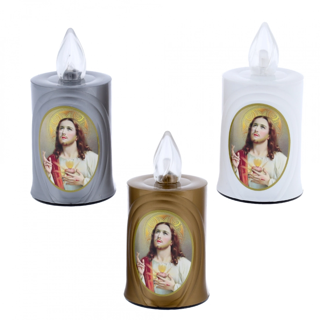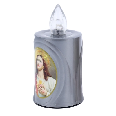 Lumino votivo elettronico con immagine del Sacro Cuore di Gesù, con durata 120 giorni e dotato di luce chiara, che simula la fiamma reale. Le batterie sono incluse e sono sostituibili, per cui una volta scaricate quelle in dotazione è possibile cambiarle, questo consente di far durare più a lungo il lumino e non buttarlo dopo averlo utilizzato. Le batterie compatibili sono le normali stilo AA. Il lumino ha anche il pulsante ON-OFF per cui è possibile scegliere quando accenderlo o spegnerlo. Prodotto da un'azienda europea con elevata competenza nel settore.