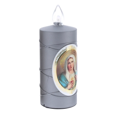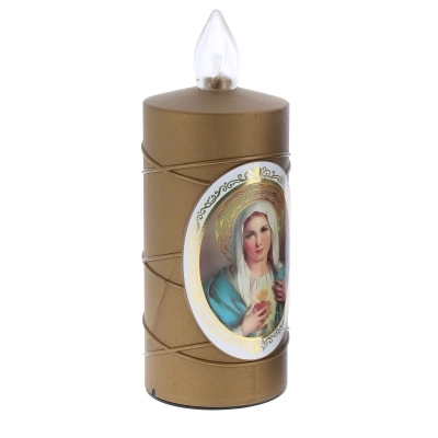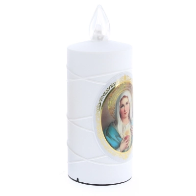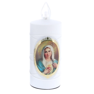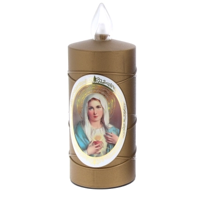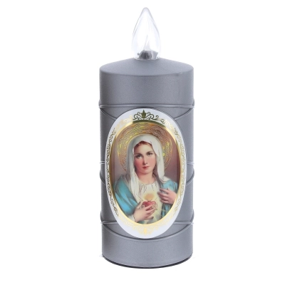 Lumino votivo elettronico con immagine del Cuore Immacolato di Maria, con durata 120 giorni e dotato di luce chiara, che simula la fiamma reale. Le batterie sono incluse e sono sostituibili, per cui una volta scaricate quelle in dotazione è possibile cambiarle, questo consente di far durare più a lungo il lumino e non buttarlo dopo averlo utilizzato. Le batterie compatibili sono le normali stilo AA. Il lumino ha anche il pulsante ON-OFF per cui è possibile scegliere quando accenderlo o spegnerlo. Prodotto da un'azienda europea con elevata competenza nel settore.